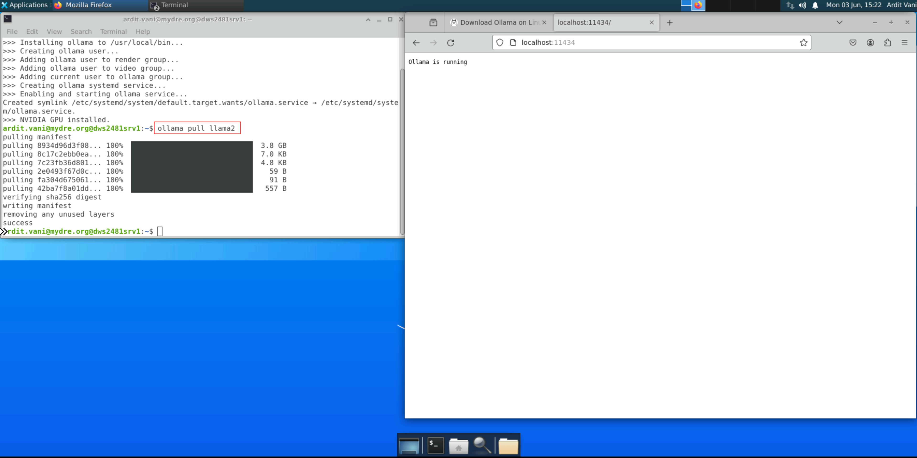 Open the browser and search for localhost:11434. If you see "Ollama is running", you are good to go. This port (11434) is where OLLAMA's API services is running